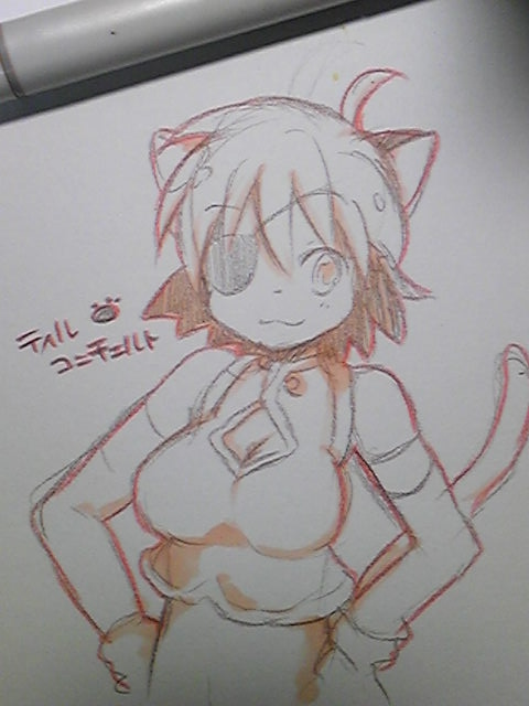 水着のエル、ショコラ、レッドに黒猫団をドーンと描いてますw 水着ネタですよー。